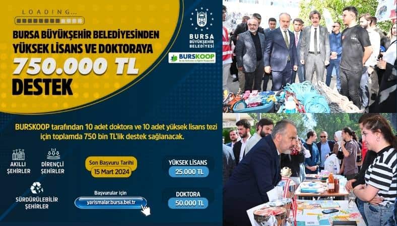Bursa Büyükşehir Belediyesi geçen yıl olduğu gibi bu yıl da doktora ve yüksek lisans öğrencilerini de bursla destekliyor. BURSKOOP tarafından bu yıl...