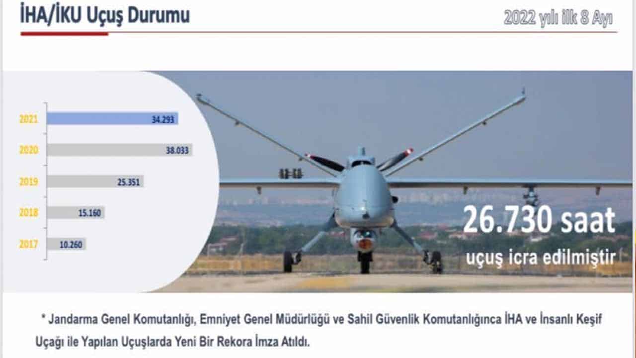 İçişleri Bakanlığının yerli ve milli unsurları İHA/SİHA ve İKU’lar ile bu yılın 8 aylık döneminde 26 bin 730 saat uçuş gerçekleştirilerek terörden doğal...