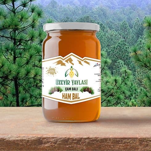 Uşak Ortaköy’de kendi arılarımızdan ürettiğimiz ve hiçbir ısıl işlemden geçmeyen, tamamen doğal ve katkısız ham çam balıdır.